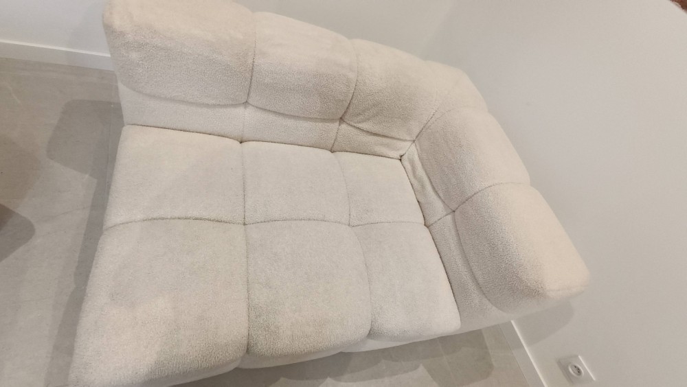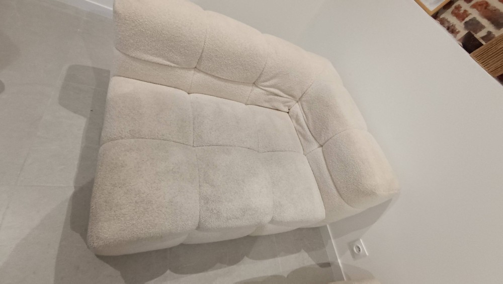 Après passage, le changement est immédiatement visible : le canapé retrouve un rendu plus uniforme et une apparence bien plus propre.