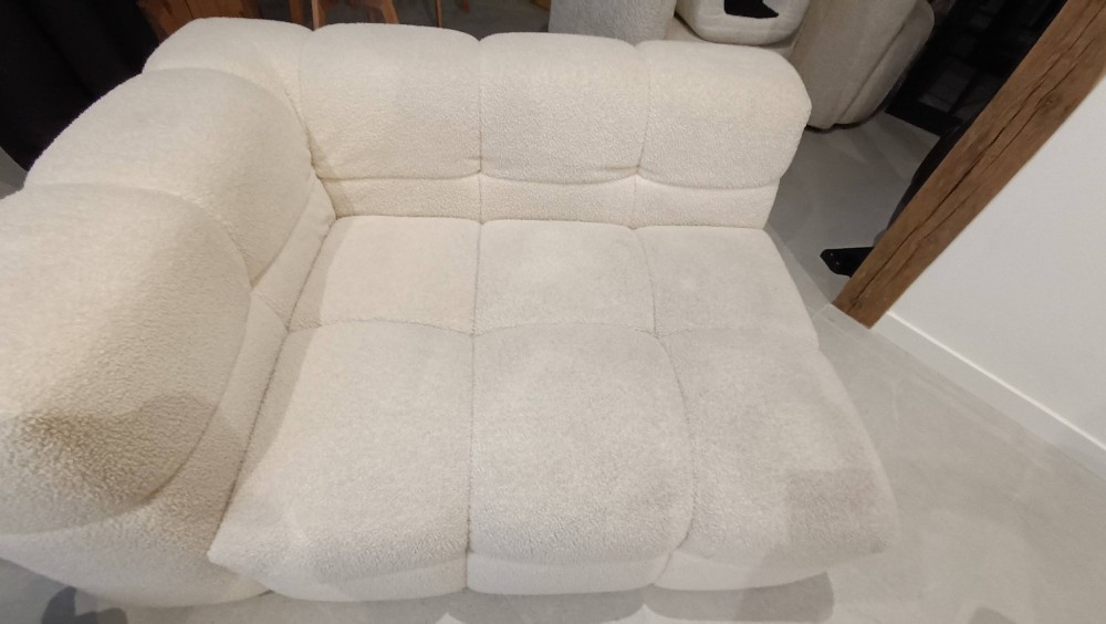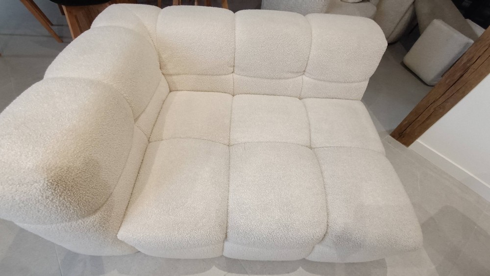 Ce canapé clair montrait clairement les effets du quotidien : des zones plus foncées, un rendu irrégulier et un tissu qui paraissait moins lumineux.